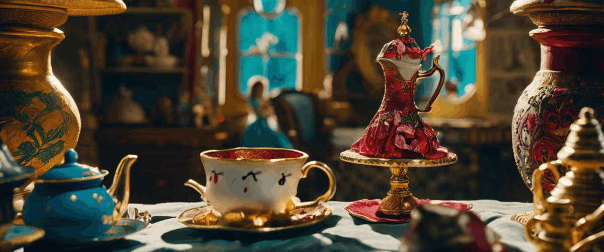 - Les tasses de thé en perpétuel mouvement renforcent l’absurdité du temps et des conventions sociales.